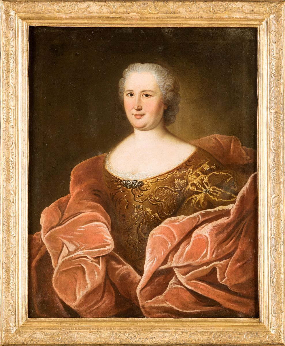 Ritratto di gentildonna con morbida stola in velluto rosso