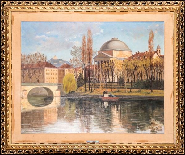 Firmato in basso a destra: Perotti. Sulla cornice etichetta con iscritto: Marco Perotti - La Gran Madre di Dio, dono del conte U. Allioni di Brondello