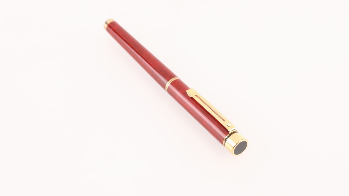 Penna stilografica in metallo dorato e lacca, pennino in oro 14 Kt.