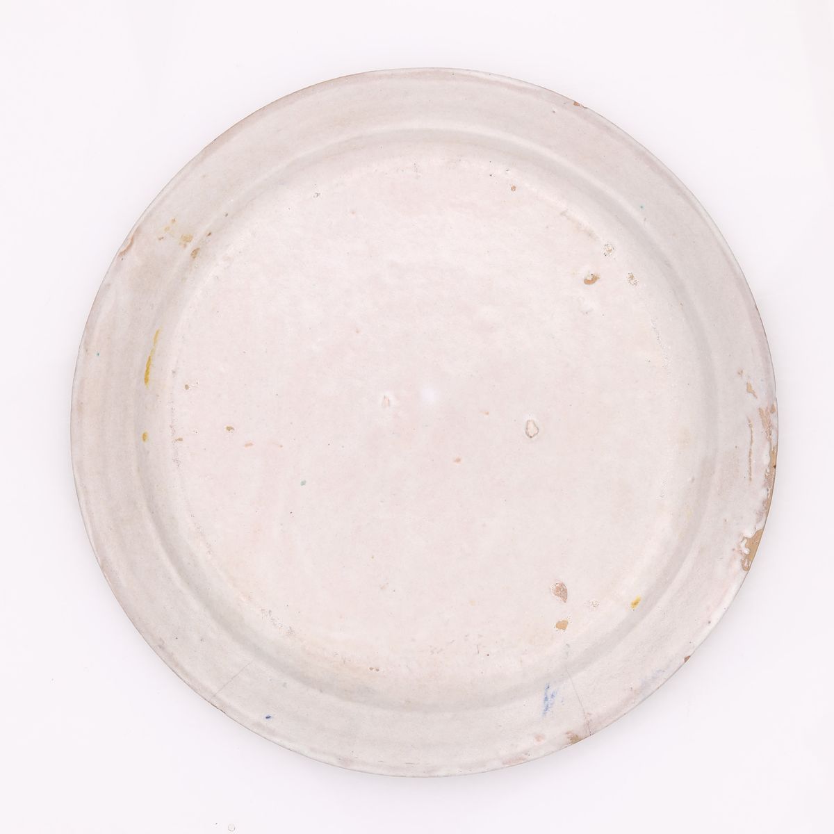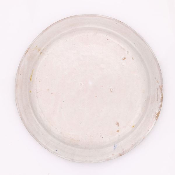 centrato da un pesce blu e giallo; tesa a bande gialle e manganese. Lievi cadute di smalto