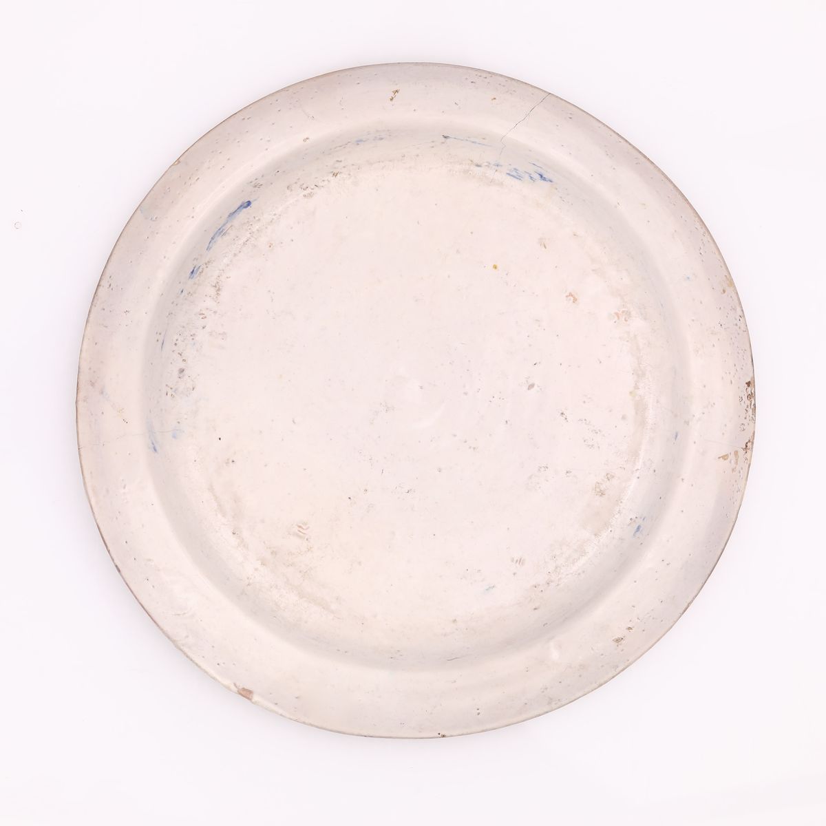 centrato da un uccello sospeso su paesaggio minimo eseguito a pennello; anelli blu e ocra alternati con decori manganese lungo la tesa