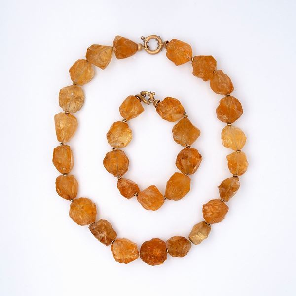 Collana con bracciale di quarzi citrini taglio grezzo, Anni '70