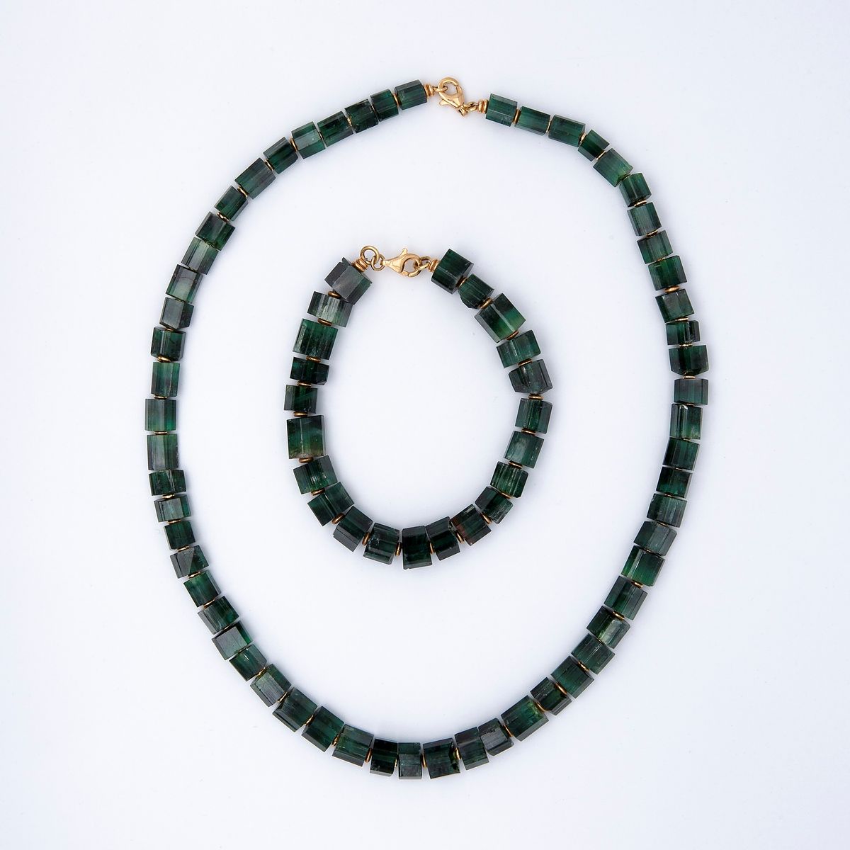 Collana e bracciale in tormaline verdi, Anni '70