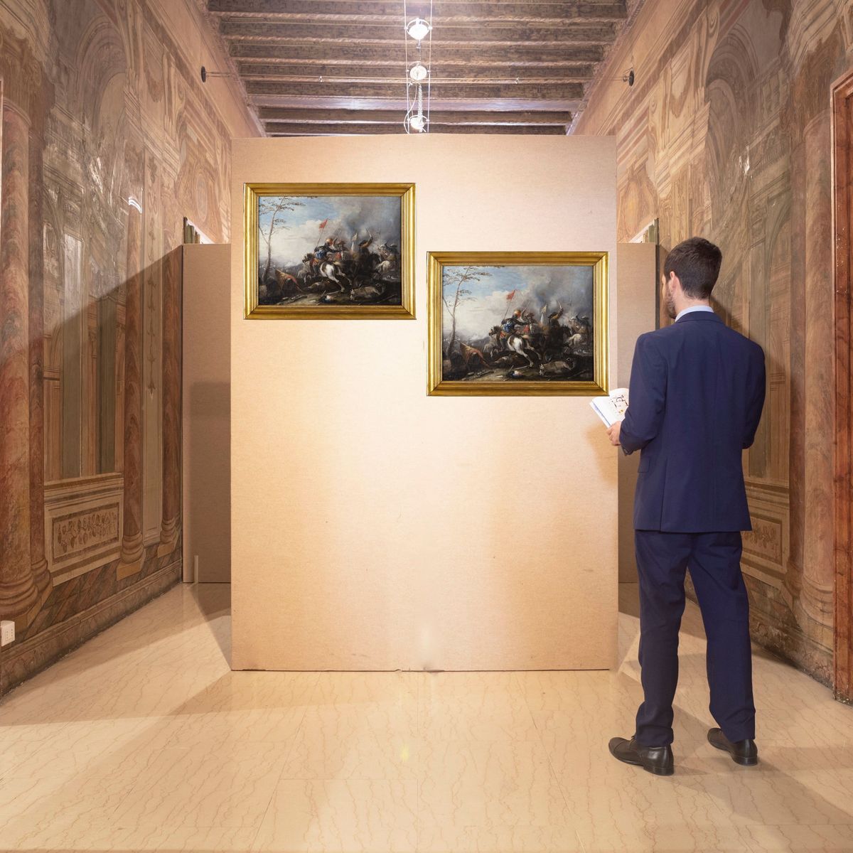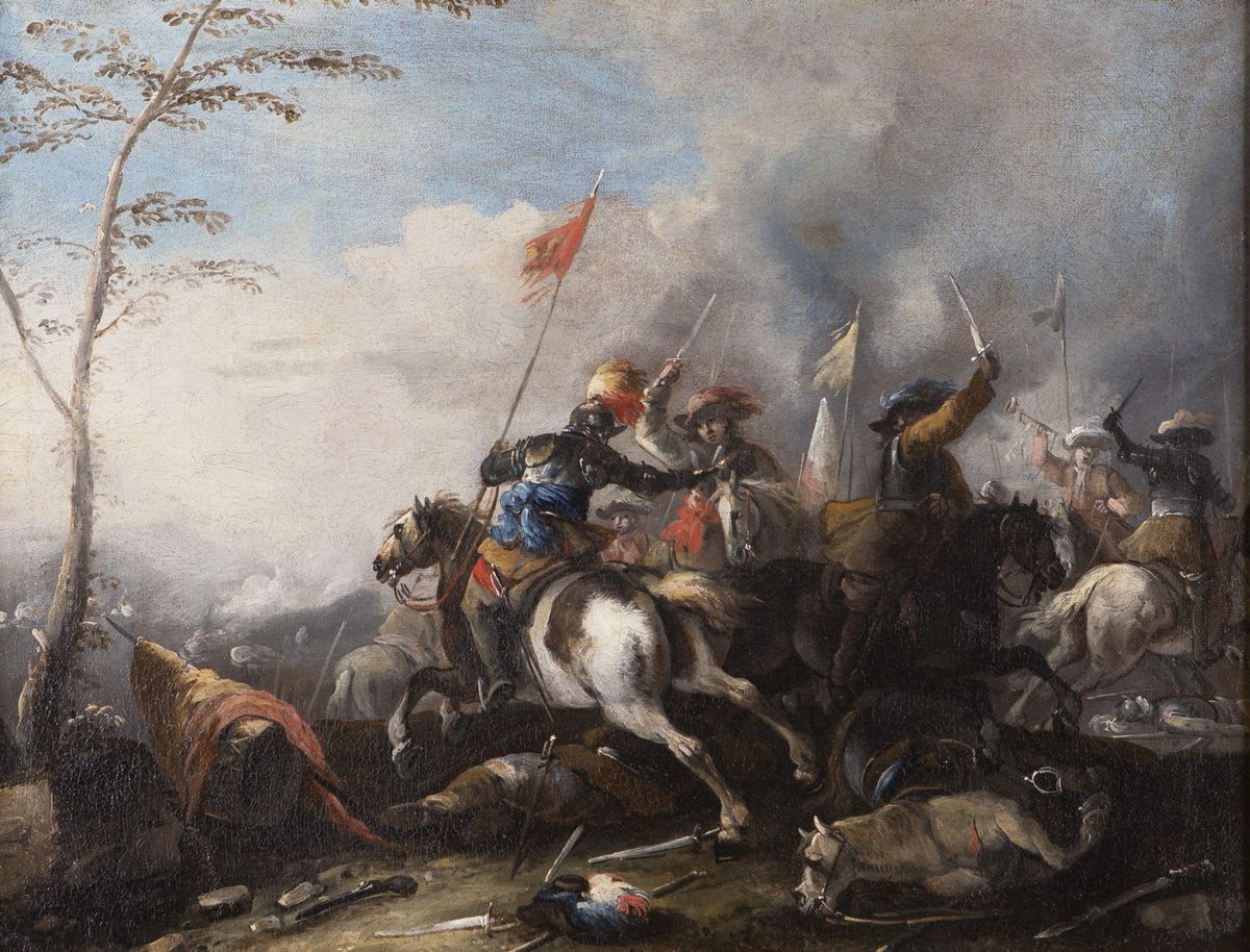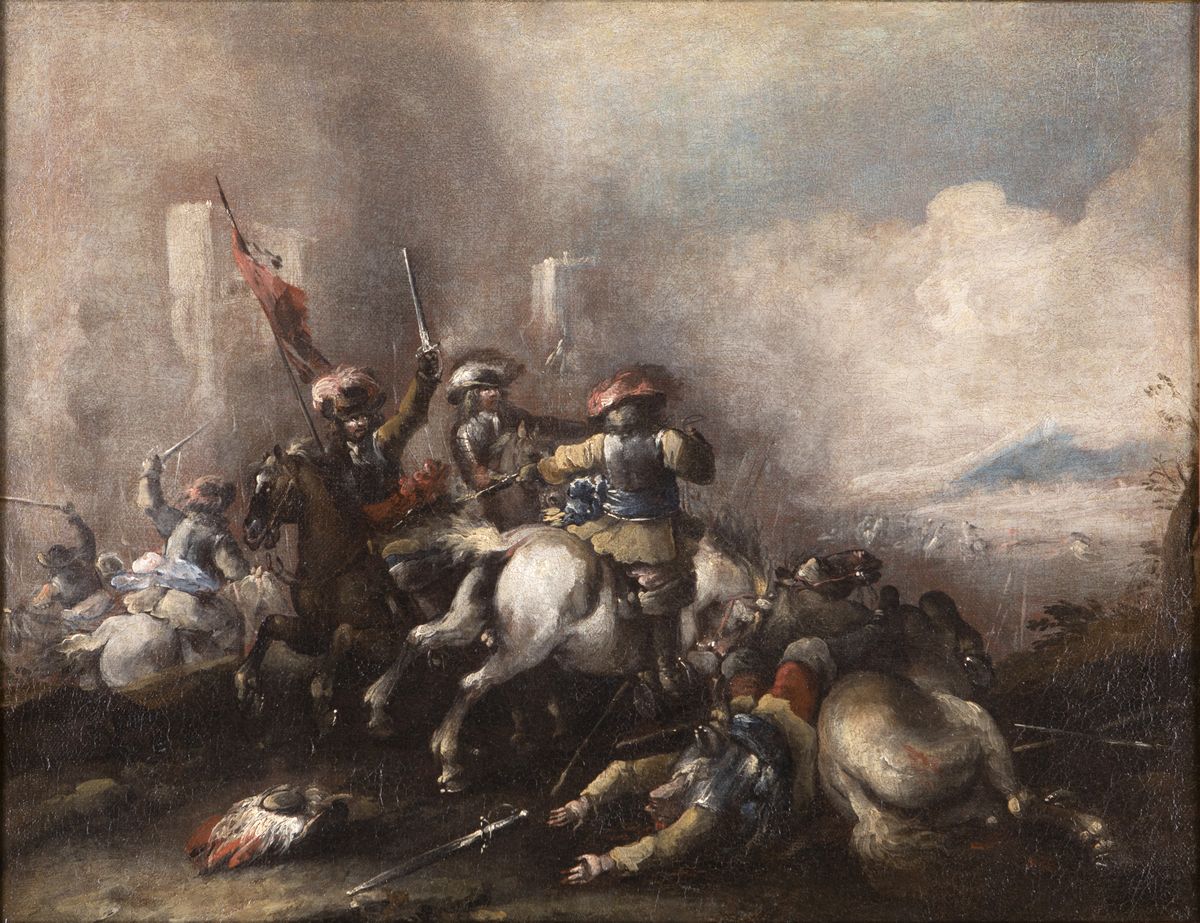 Le tele, che ammiriamo per la pennellata veloce e guizzante, i colpi di luce sapientemente disposti e l'efficace resa del movimento, danno il senso di come il genere delle battaglie avesse rappresentato una fondamentale occasione artistica per molti pittori, soprattutto dal XVII secolo in poi. Vediamo qui lo stemperarsi di aspetti pittorici ancora squisitamente legati alla tradizione veneta, di cui il Marini era figlio, nel compiacimento di una pittura tutta emiliana.