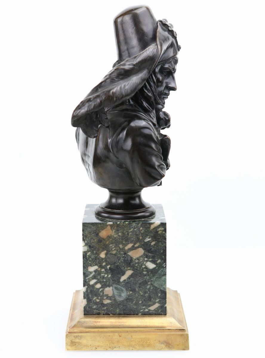 ritratto con cappello con coccarda repubblicana; piedistallo squadrato in breccia verde con profilo dorato