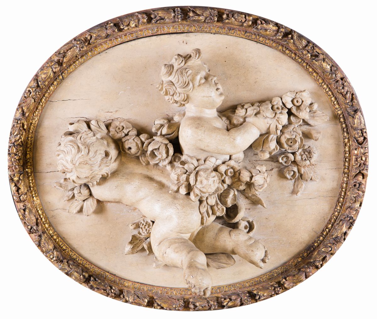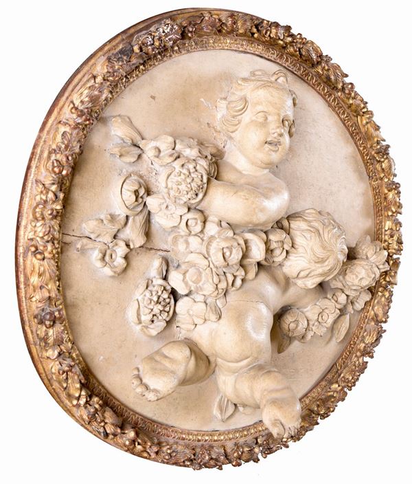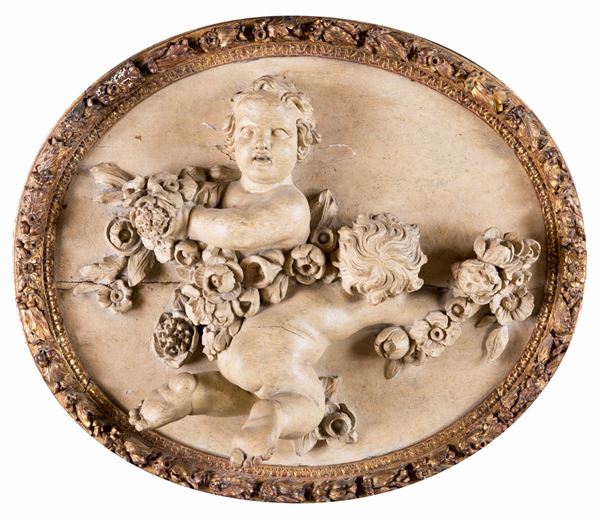Coppia di altorilievi ovali in legno scolpito, Francia, XVIII secolo