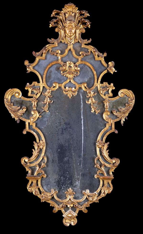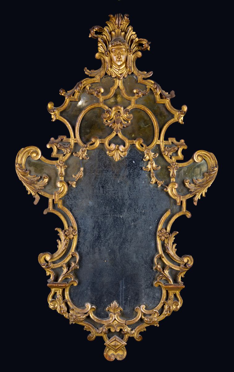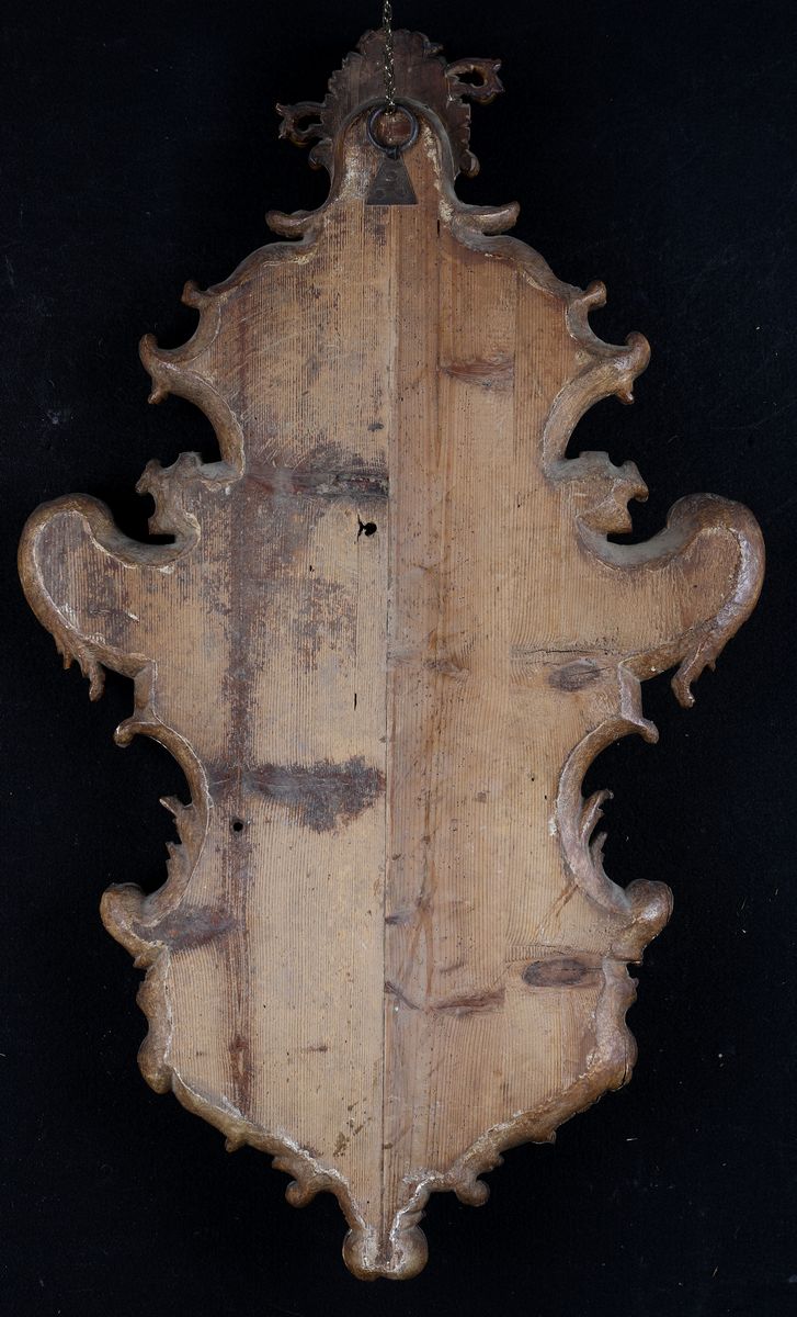 di forma sagomata, racchiuse da cornici spezzate, volute e motivi vegetali; sommità caratterizzata da mascherone