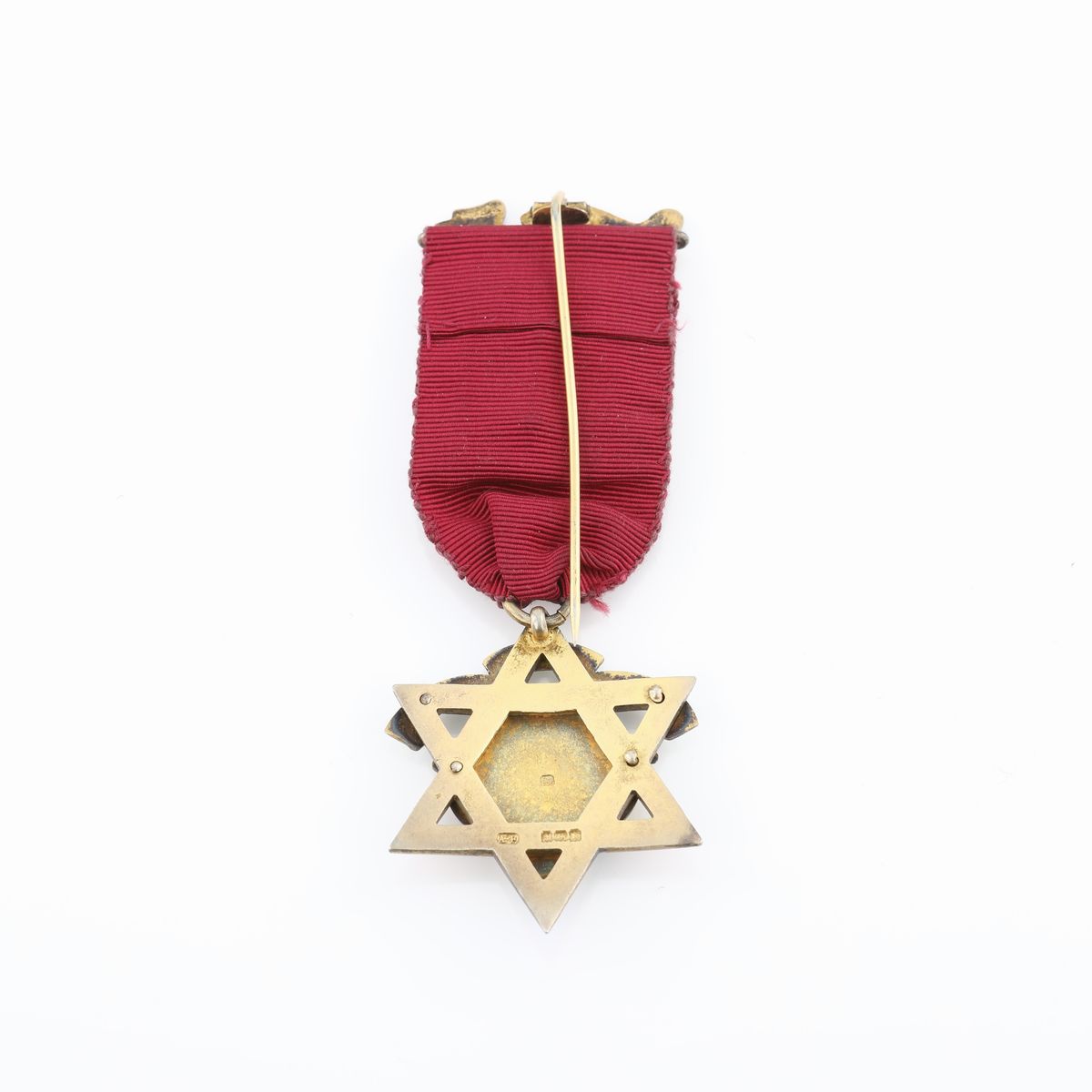 Distintivo con coccarda e spilla dell'Alston R.A. Chapter n° 2794 in argento dorato e smalti
