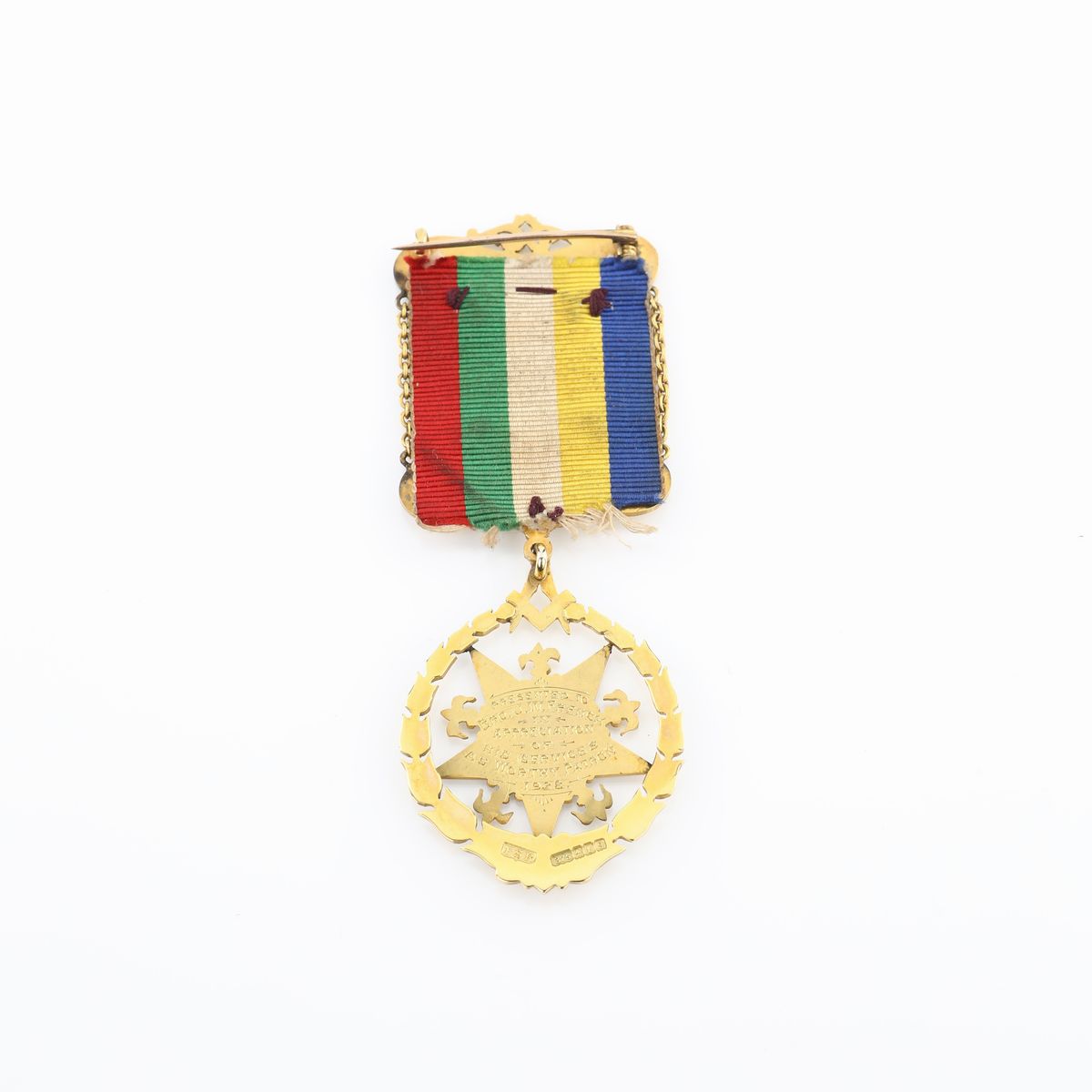 Sulla coccarda cartiglio con iscritto Beatrice Chapter n° 52. Inciso al verso della stella d'oriente: Presented to Bro. J.W. French in appreciation of his services as Worthy Patron 1928. Bollo della città di Birmingham con datario 1905-6 e dell'argentiere F.S.R.