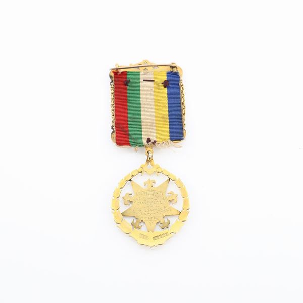 Distintivo con coccarda e spilla dell'Order of the Eastern Star interamente in oro 9kt