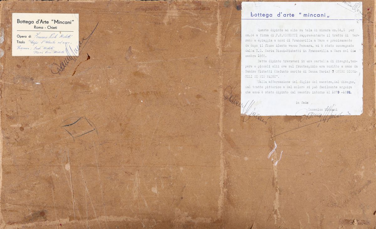Al retro etichetta della Galleria d'Arte Mincani. Roma - Chieti
