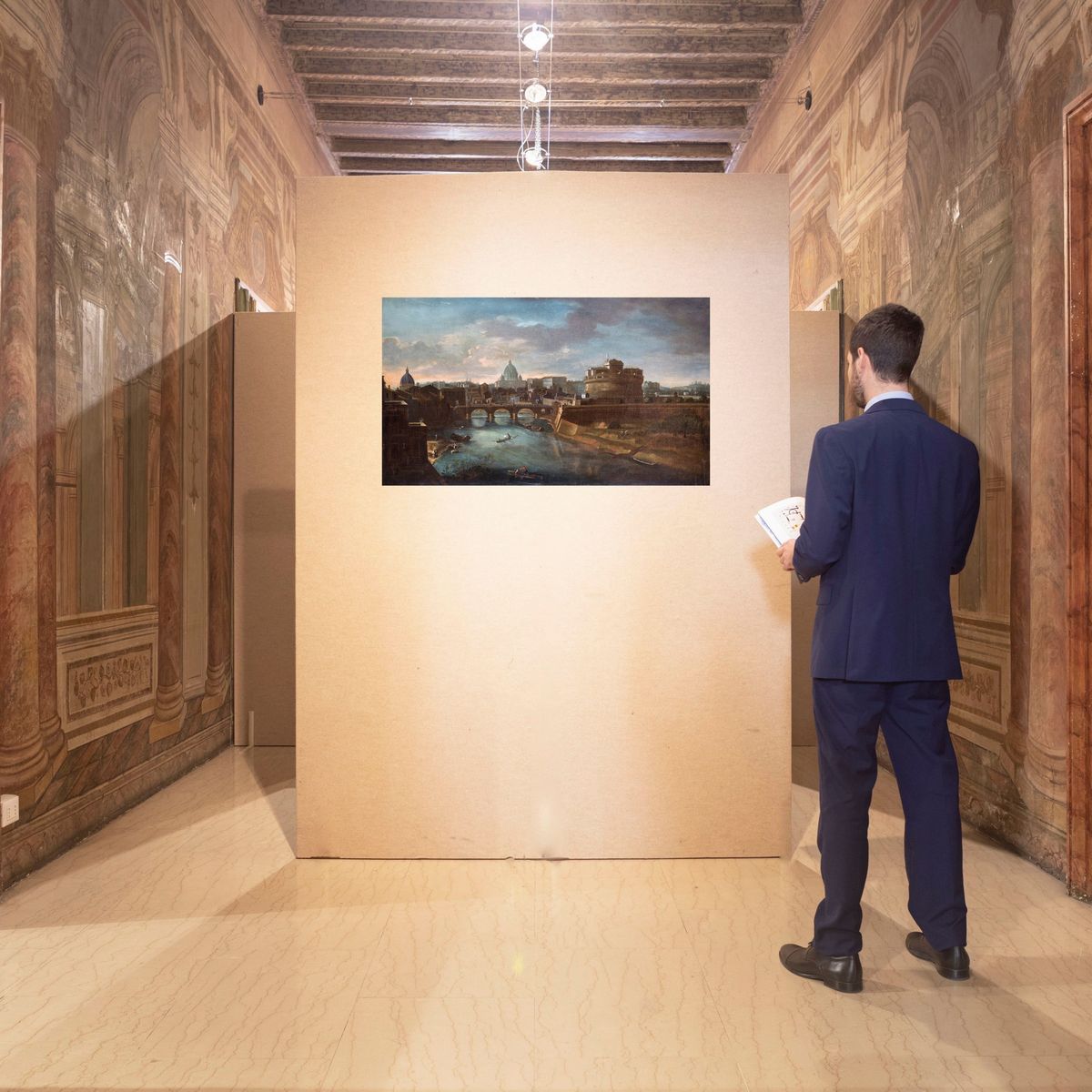 L'opera mostra una suggestiva veduta di Roma secondo l'esempio di quelle eseguite da Gaspar van Wittel, e si posiziona tra quelle produzioni che comparvero nei principali centri italiani sulla scia del successo dei modelli del maestro.