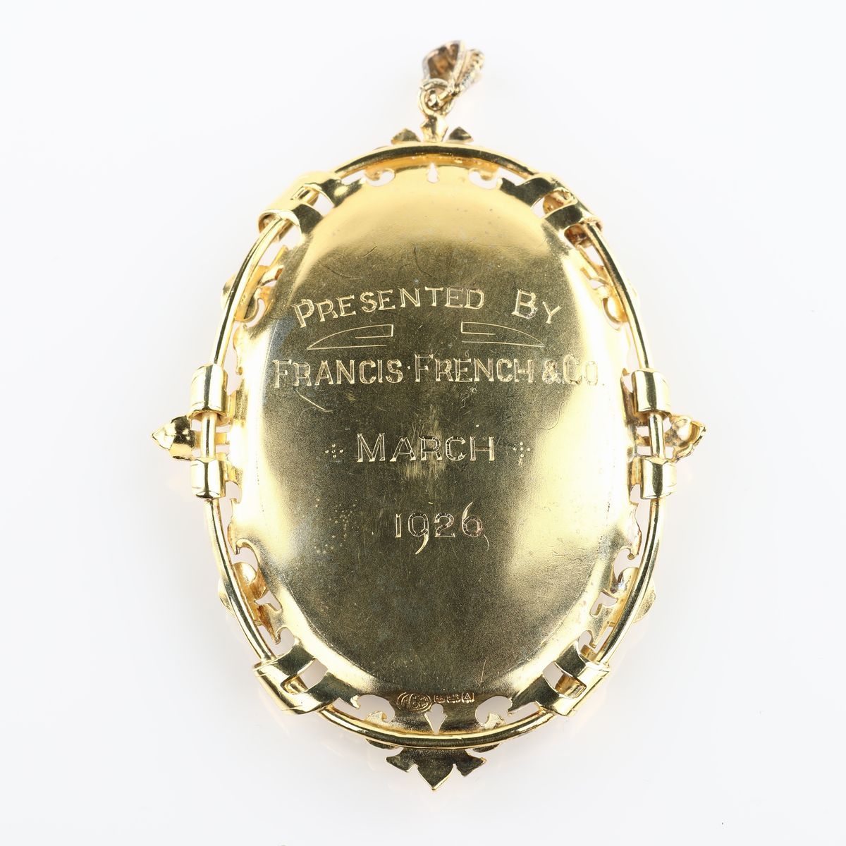 Grande pendente ovale in argento dorato e smalti del President of Balham Tooting & District Grocers Association