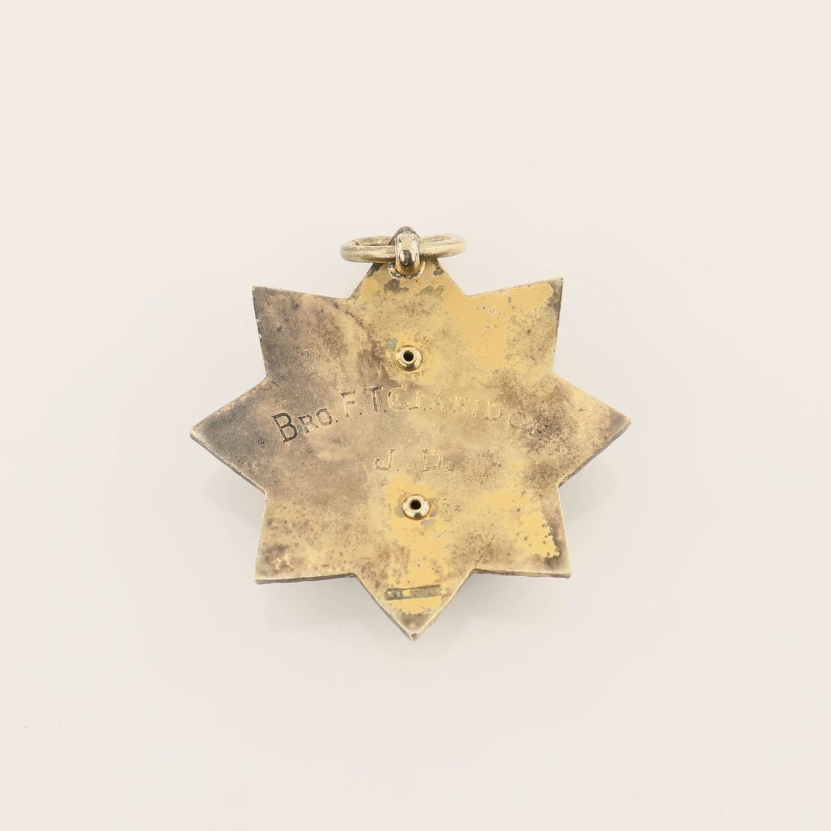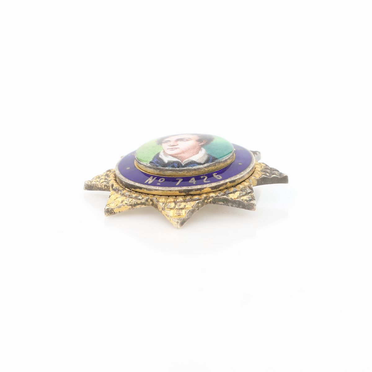 a forma di stella a otto punte caratterizzata da miniatura in smalti policromi raffigurante Lord Byron; inciso al verso: Bro. F.T. Claridge J.D.
