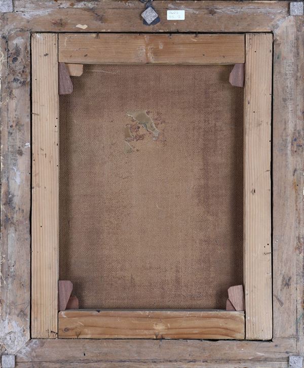 Ritratto riferibile ai primi decenni del XVII. La tecnica dell'incarnato e la descrizione della barba suggeriscono un pittore di area bolognese.