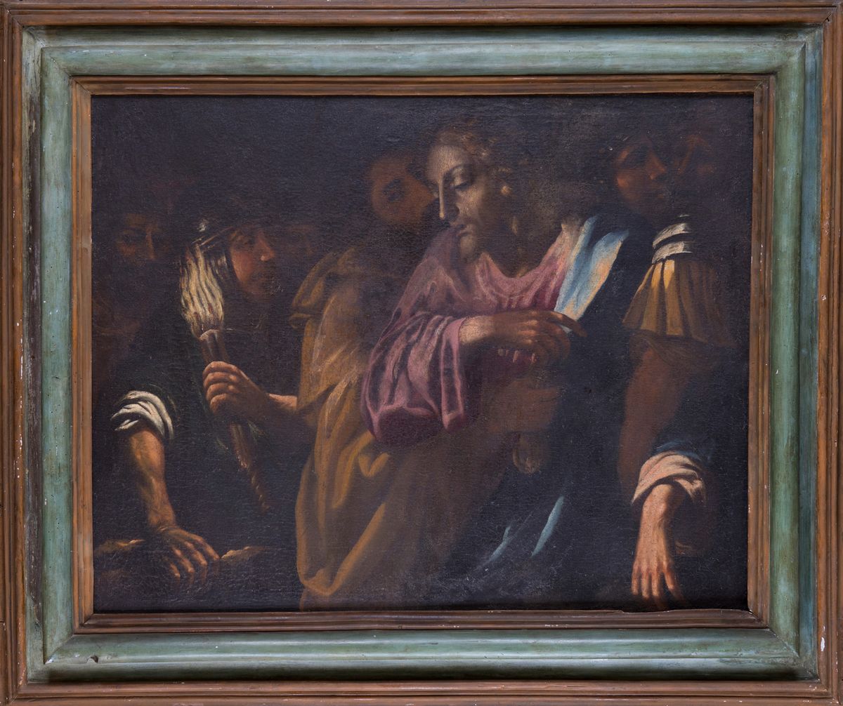I contrasti di luce, le fredde e smaltate cromie e la fisionomia della figura di Cristo suggeriscono un pittore lombardo della prima metà del XVII secolo. La Presa di Cristo nell' Orto degli Ulivi, scena particolarmente complessa da raffigurare e di grande suggestione, determinò durante tutto il XVII secolo una fondamentale occasione per quei pittori che intendevano sperimentare difficili composizioni e forti effetti di contrasto luministico. Il dipinto qui proposto, corredato da cornice coeva, si inserisce nel filone della pittura lombarda del XVII secolo.
