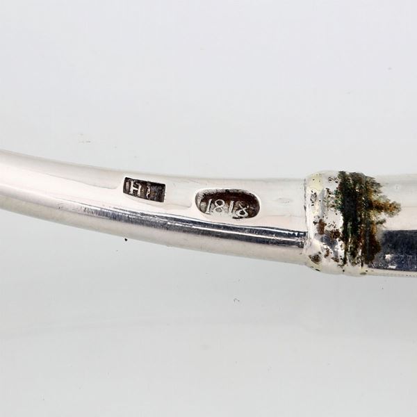 con paletta incisa lungo il profilo a motivi vegetali e decorata al centro da una casa affiancata da alberi. Reca bollo con data 1818 al verso dell'impugnatura e all'attaccatura del manico la data 1833 incisa