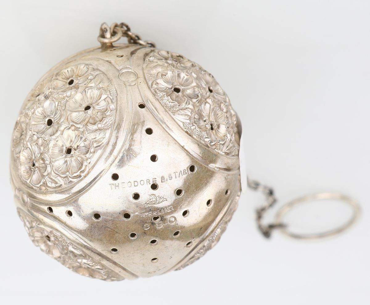 Infusore da tè in argento sterling, New York, argentiere Theodore B. Starr