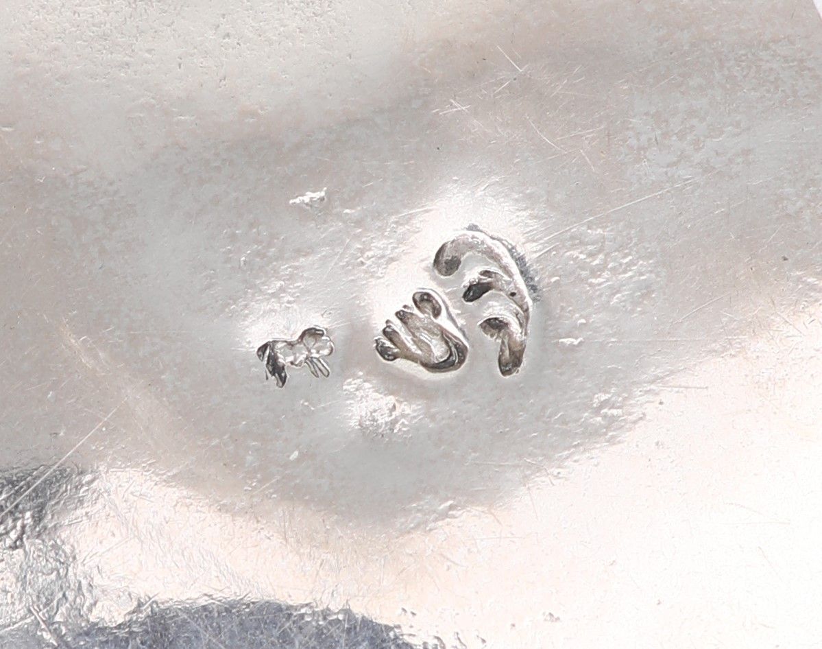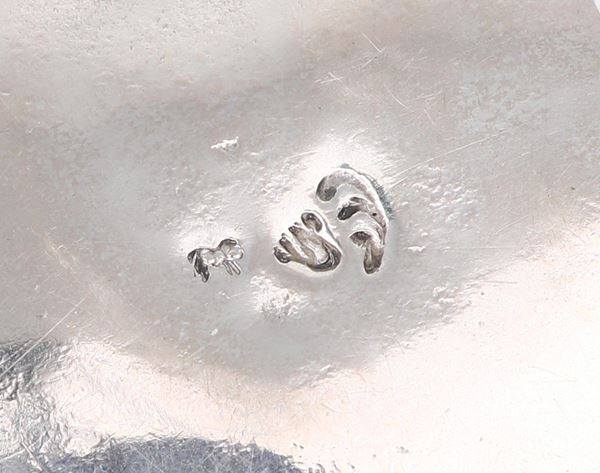 di forma ovale con corpo costolato arricchito da fitta ornamentazione sbalzata e cesellata a motivi naturalistici e grillages geometrici; coperchio con parte centrale bombata centrato da un piccolo foro, manici martellati