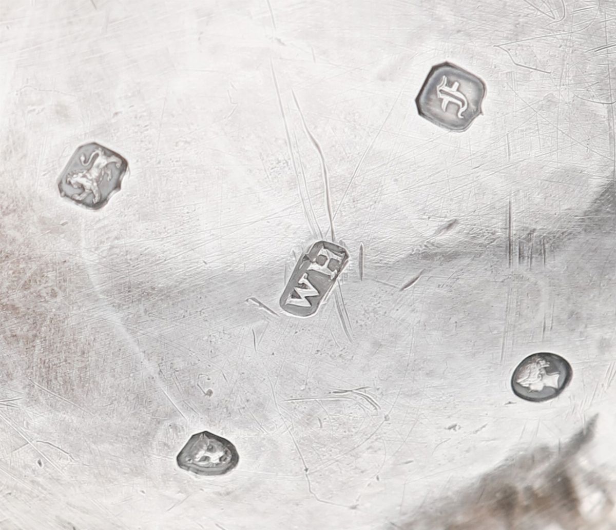 con corpo costolato percorso da brevi tralci in rilievo; reca motto latino inciso (Si Deus Nobiscum Quis Contra Nos). Difetti