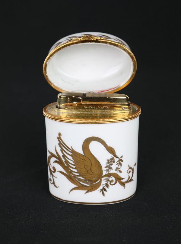 Completo da scrivania in porcellana bianca e oro, Francia, Limoges, Anni Cinquanta