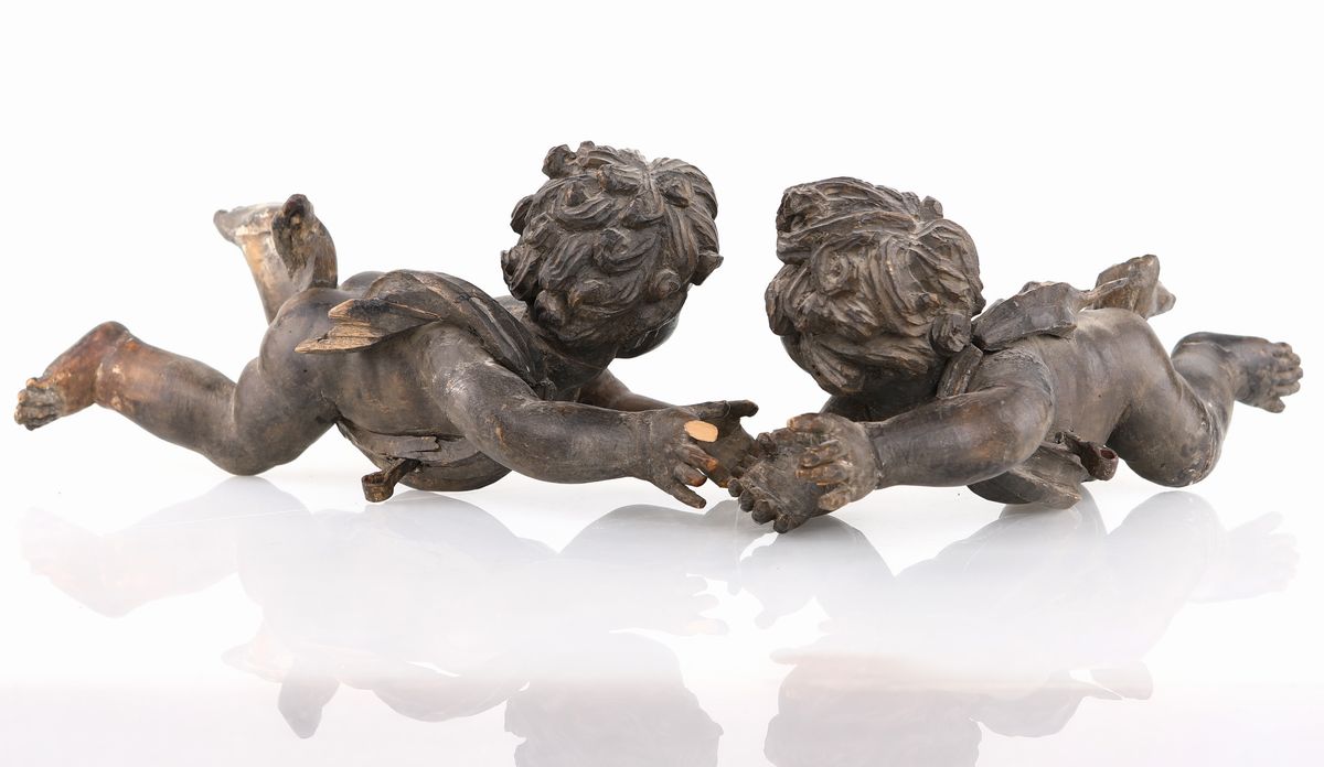 raffiguranti amorini ritratti in posizione prona con panneggi svolazzanti. Piccole mancanze