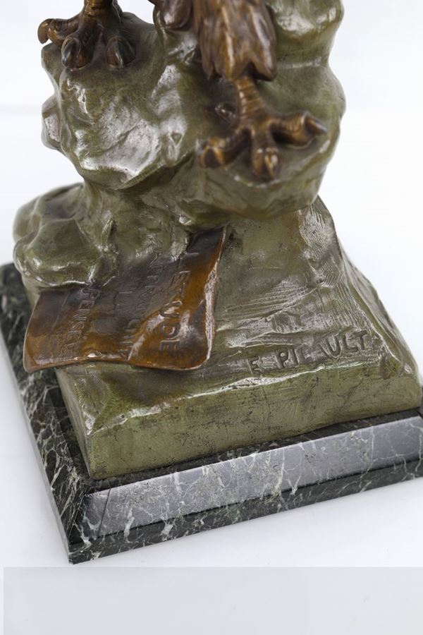 Titolo iscritto in basso: L'étude affranchit la pensée; firma sulla base: E. Picault; base in marmo verde