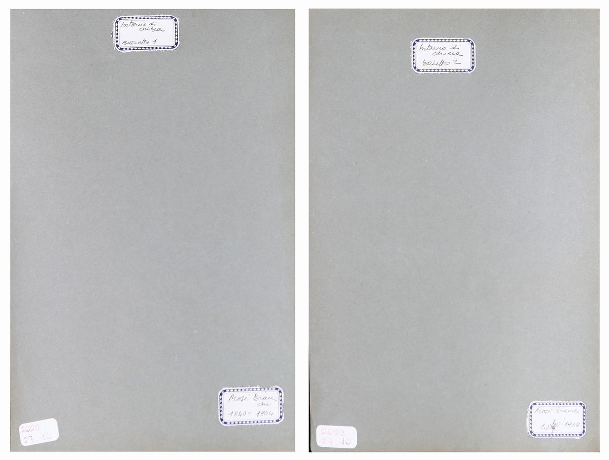 Al verso di ciascun foglio, etichette di collezione con iscritto: Mosè Bianchi, Interno di chiesa, bozzetto 1 e bozzetto 2
