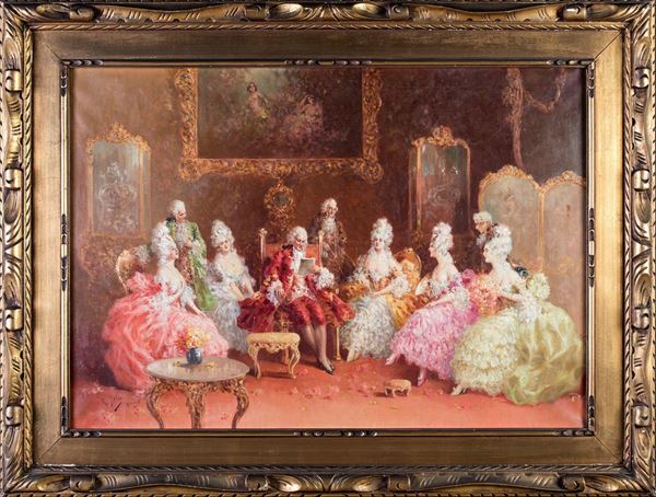 Interno con figure in abiti settecenteschi