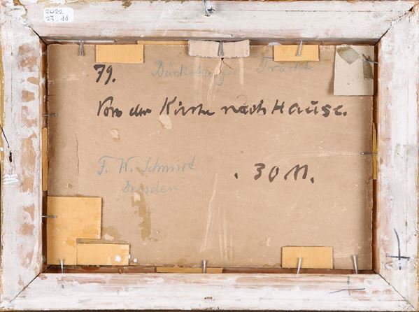 Al verso, iscrizione manoscritta con riferimento al pittore F.W. Schmidt. Difetti
