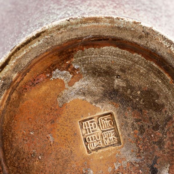 Antico vaso in ceramica sang de boeuf flambé e cracquelé, Cina