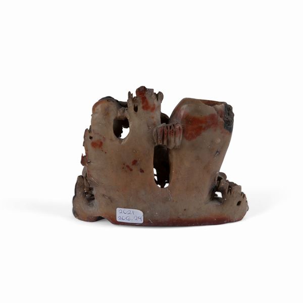 Composizione in pietra saponaria a due vaschette, Cina, XX secolo