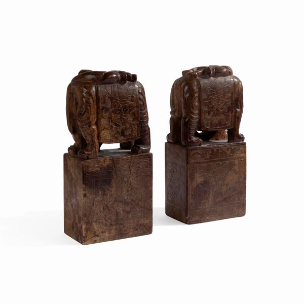 Coppia di grandi sigilli in pietra dura, Cina, XX secolo