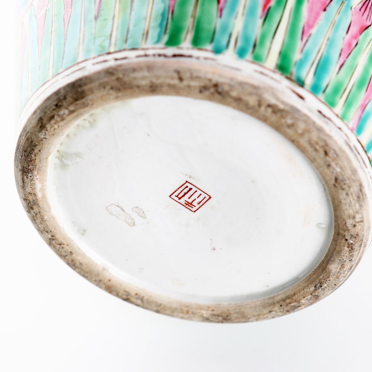 Coppia di grandi vasi in porcellana policroma, Cina, dinastia Qing
