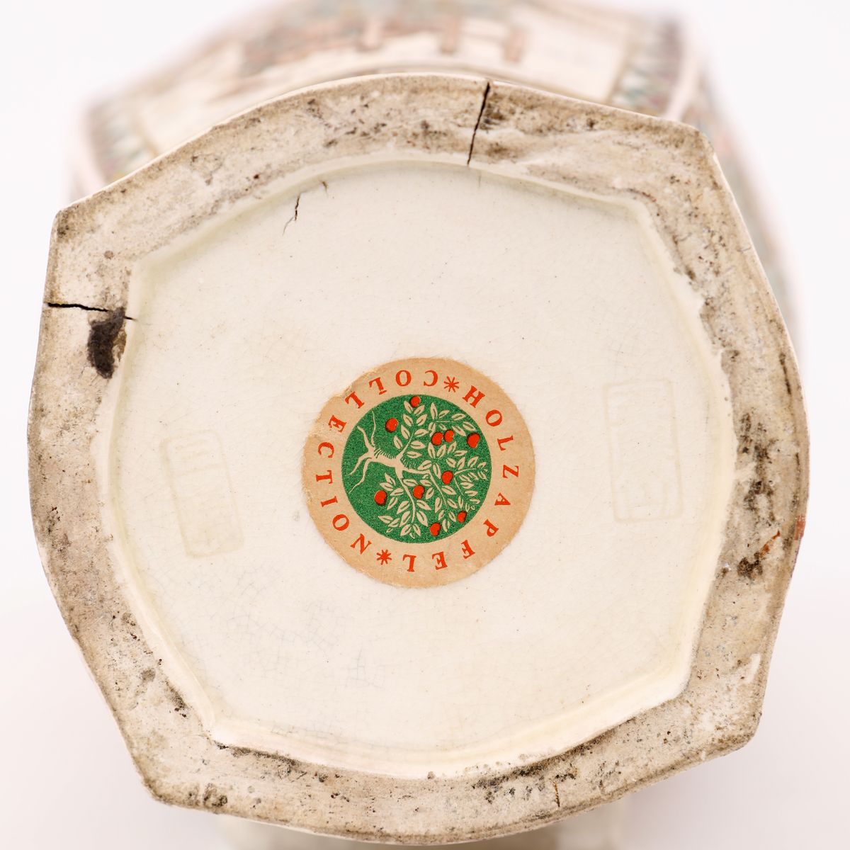 decorati nei toni dominanti del rosso e verde giada con scene di genere animate da figure su fondo crema; tutta la superficie è impreziosita da minuta decorazione rilevata in oro e smalto bianco