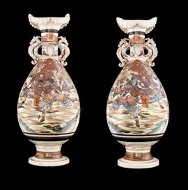 Coppia di vasi in ceramica Kyoto Satsuma, Giappone, XX secolo