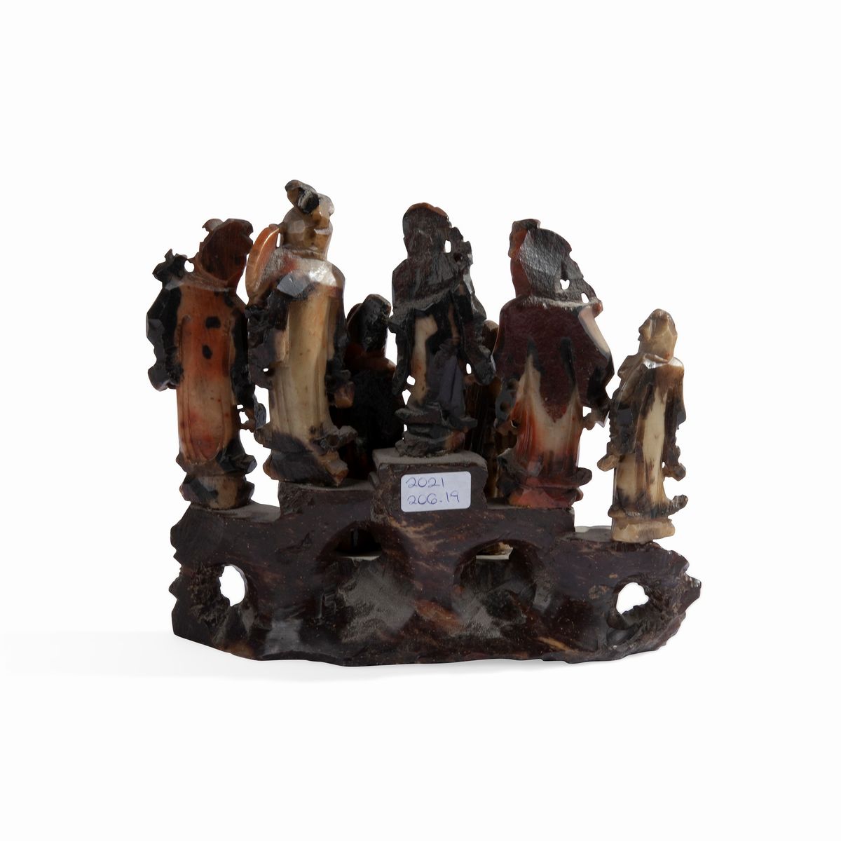 con sette figure di saggi orientali disposte su base rocciosa. Lievi difetti