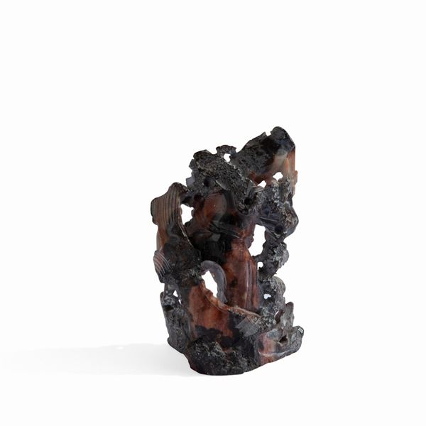 Intaglio in pietra dura rossa e nera, Cina, XX secolo