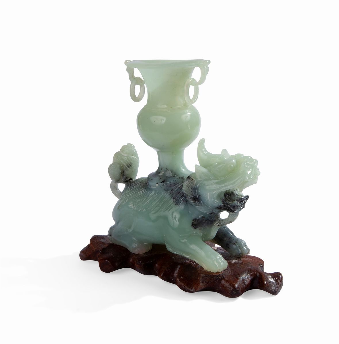 con anse abbellite da anelli mobili, poggiante sulla groppa di uno Shishi su base in legno simulante terreno roccioso