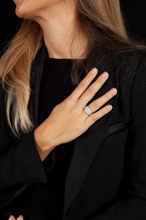 Oro bianco 750/000. Brillanti ct. 2,10 circa, prob H, VS/SI. Peso complessivo gr. 10,6.