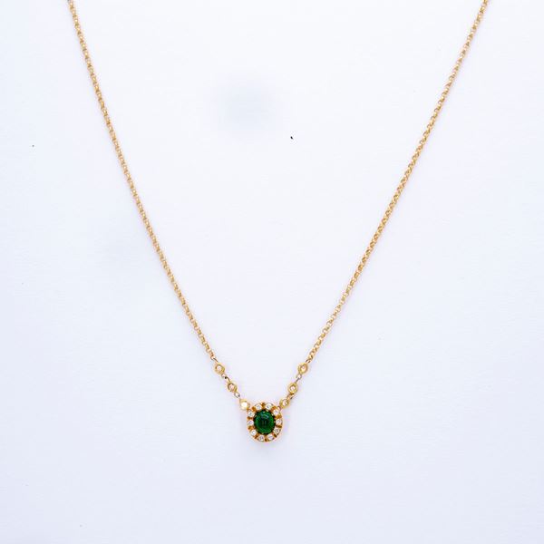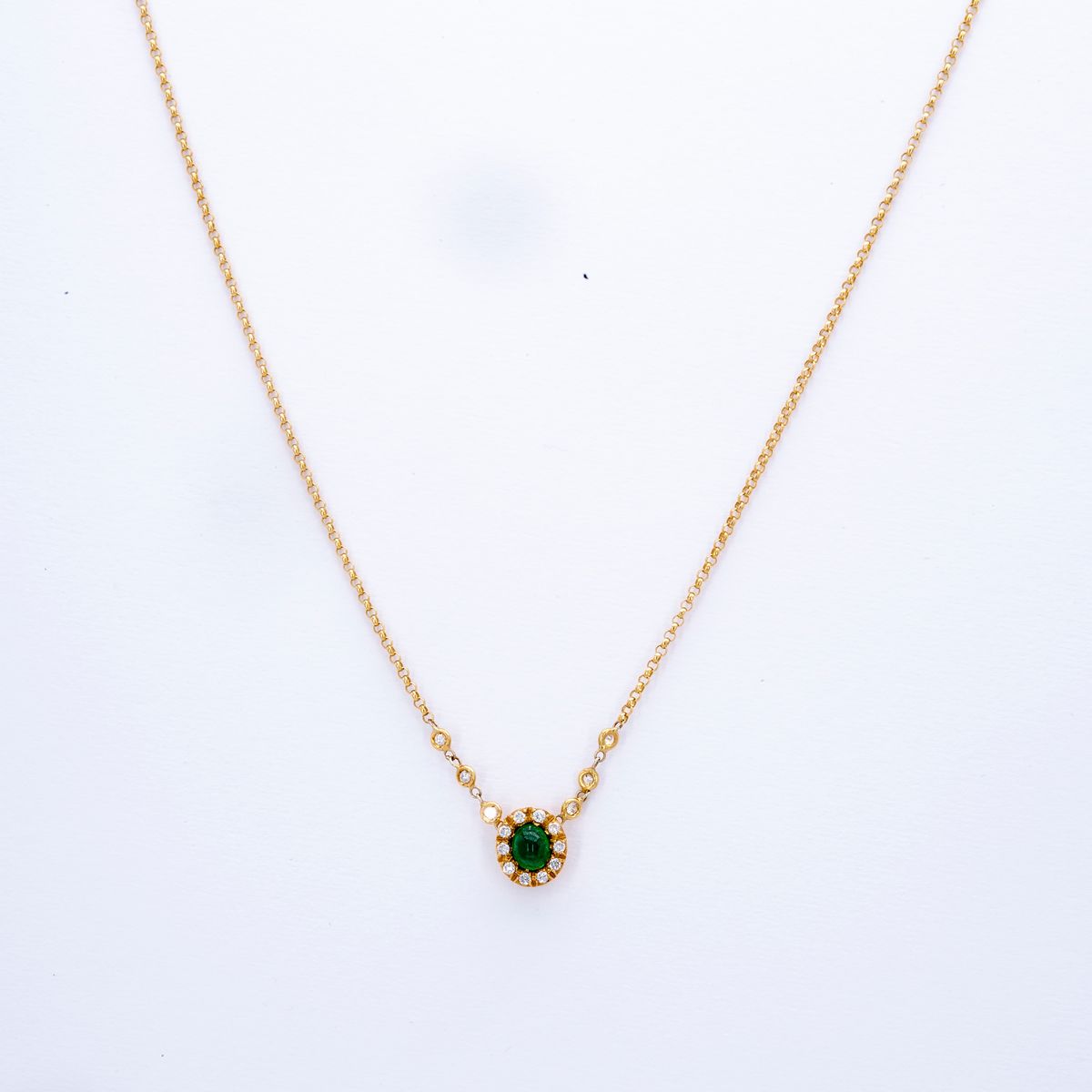 Oro giallo 750/000, brillanti e smeraldo colombiano centrale in taglio cabochon. Peso totale gr. 5,50.