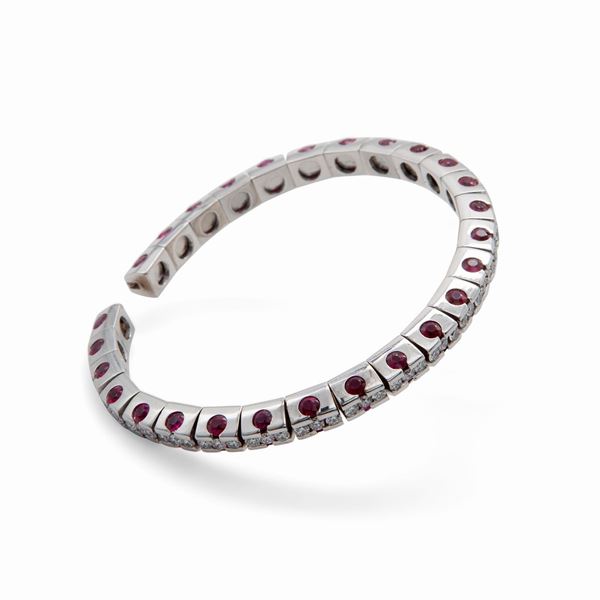 Oro bianco 750/000, Brillanti ct. 2,90 ca, rubini ct. 4,50. Peso complessivo gr. 33,3.