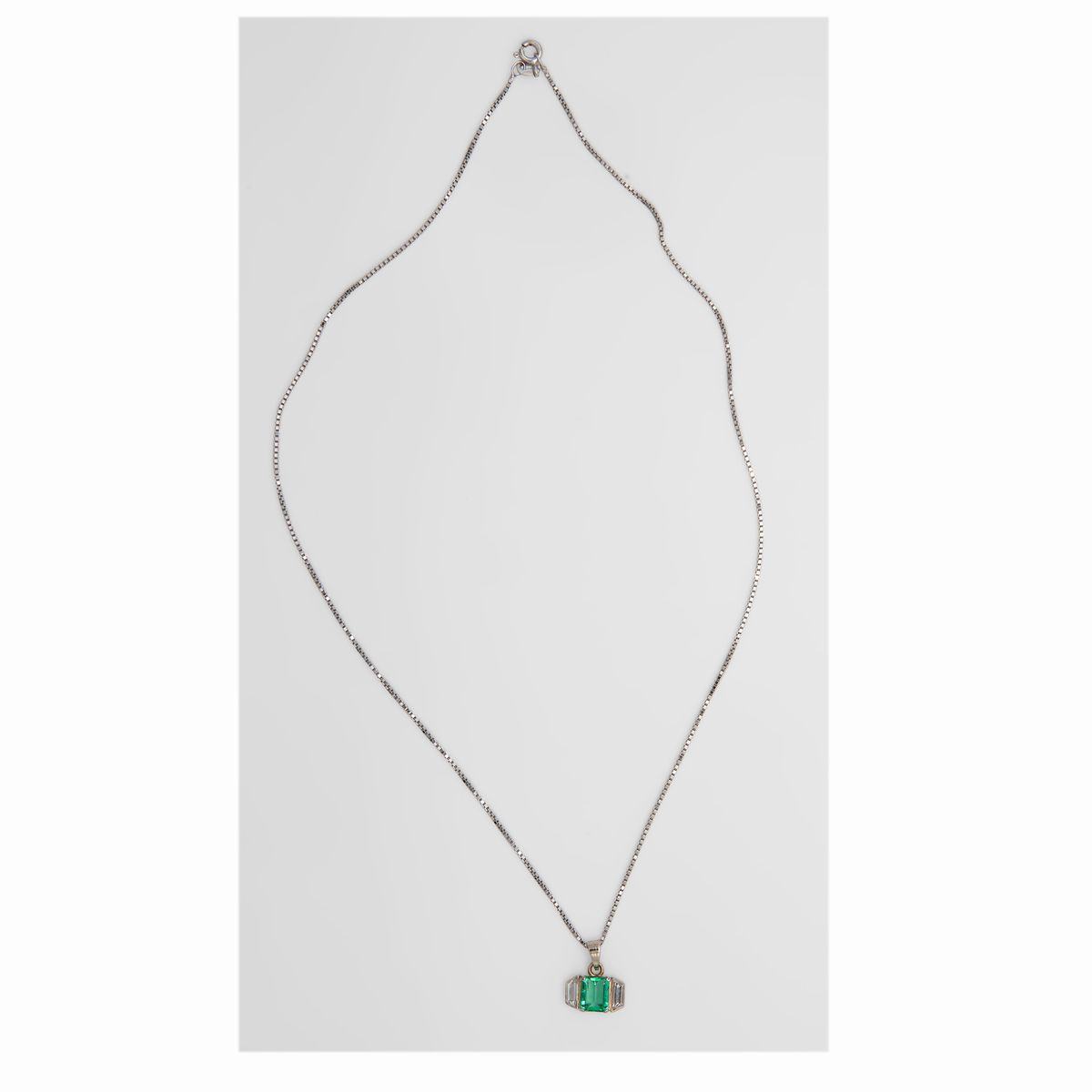 Oro bianco 750/000, diamanti taglio baguettes ct 0,30 ca., prop. G, VVS. Smeraldo ct.1 ca.