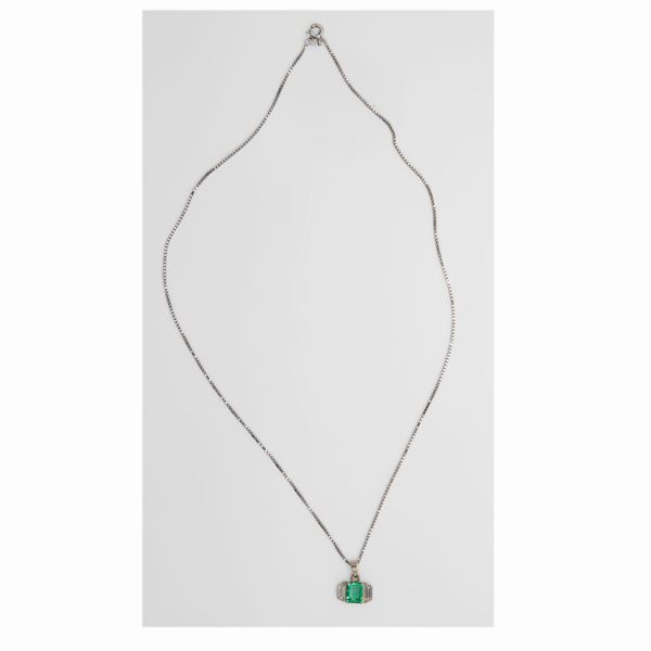 Collana con pendente in oro smeraldo e diamanti