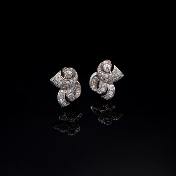 Platino 950/000, brillanti ct.1,70 ca., chiusura a clipse. Peso complessivo gr 10,80.