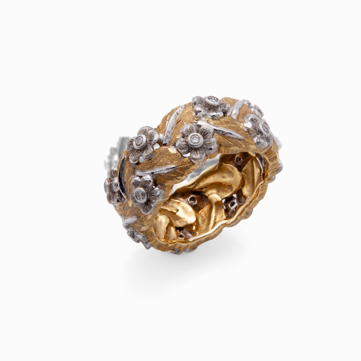Mario Buccellati, anello a fascia in oro giallo e bianco e brillanti