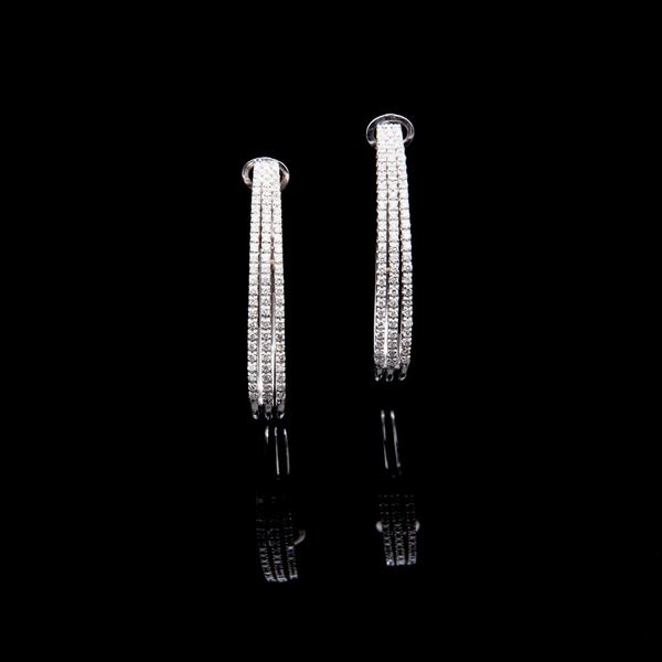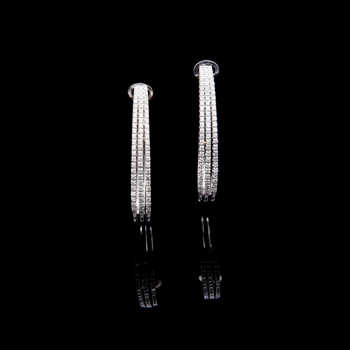 Orecchini a cerchio in oro,con tre riviere di brillanti