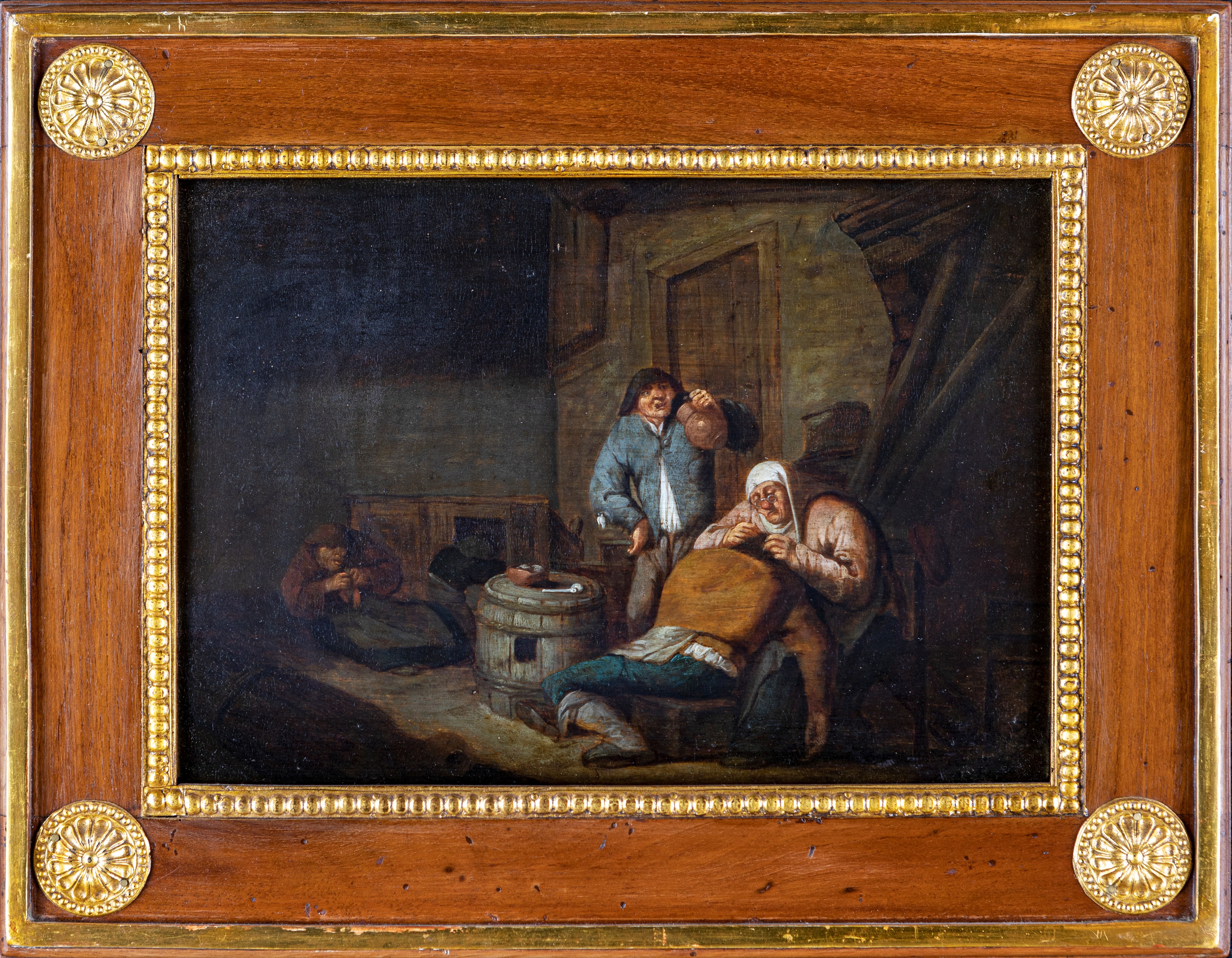 Pregevole e divertente dipinto su piccola tavola con la rappresentazione di un uomo intento a estrarre pidocchi dai capelli di un amico, secondo il consueto stile del pittore fiammingo Adriaen Brouwer. L'artista, celebre per le sue intelligenti e vivaci raffigurazioni di episodi spesso triviali e legati ai temi dell'ubriachezza e della vita delle osterie, anche in questo caso si serve di una pennellata sicura e veloce, dell'uso di una luce guizzante e rivelatrice e dell'adozione di tipi fisici grotteschi e caricaturali