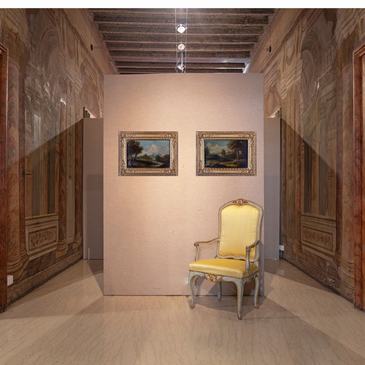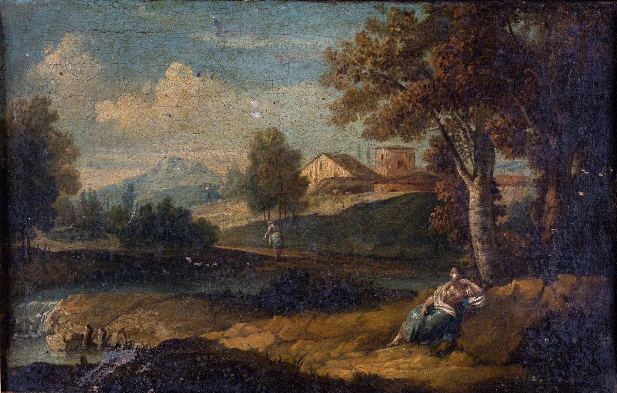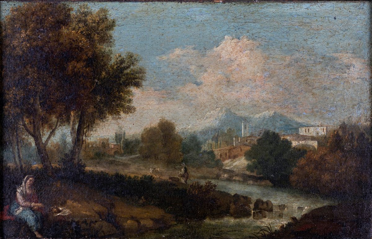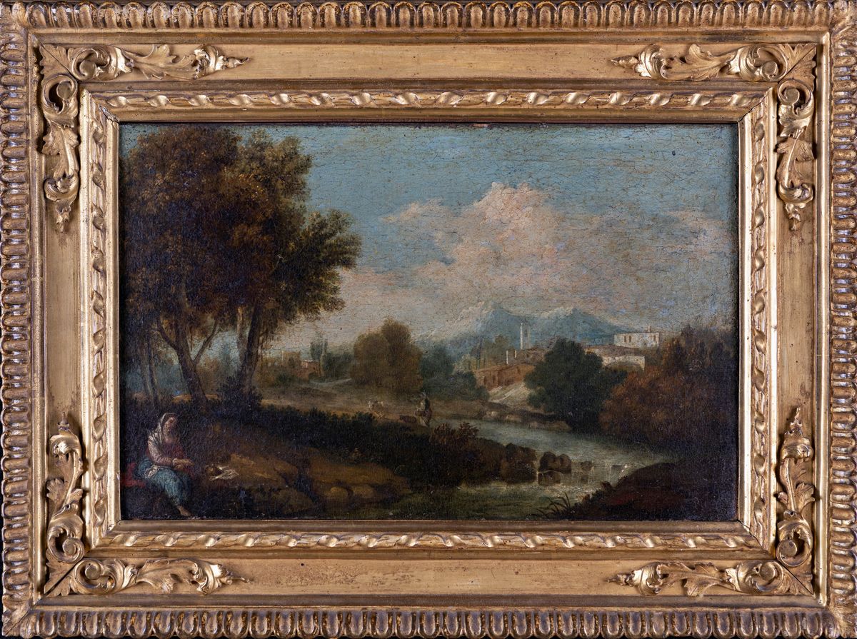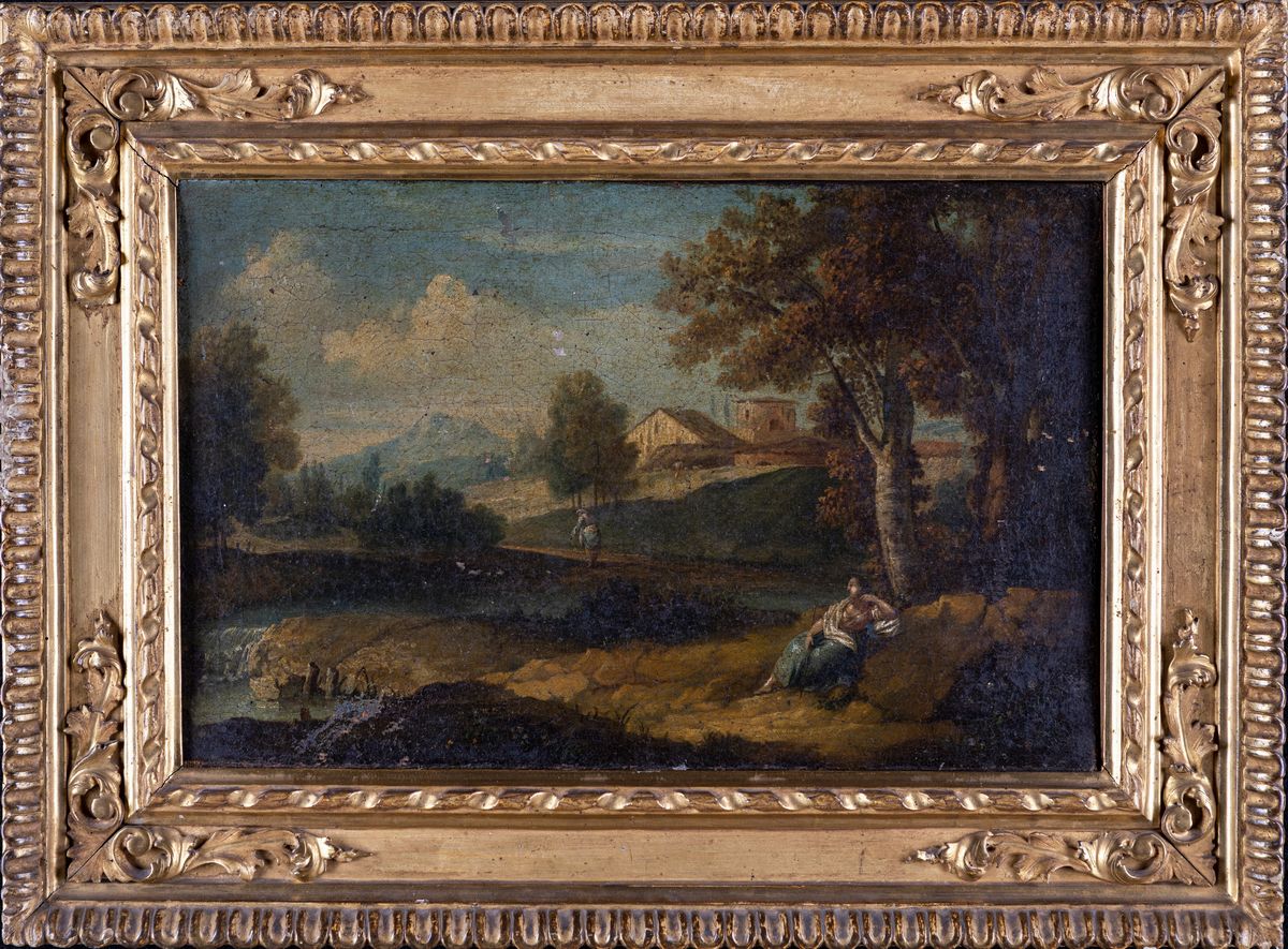 Le due tele raffigurano due suggestive vedute di un paesaggio fluviale con figure sparse qua e là ed edifici in lontananza. La sensibilità cromatica, l'impostazione generale degli elementi naturali e il tipo di pittura portano a posizionare le opere nel contesto della pittura romana della seconda metà del XVII secolo.