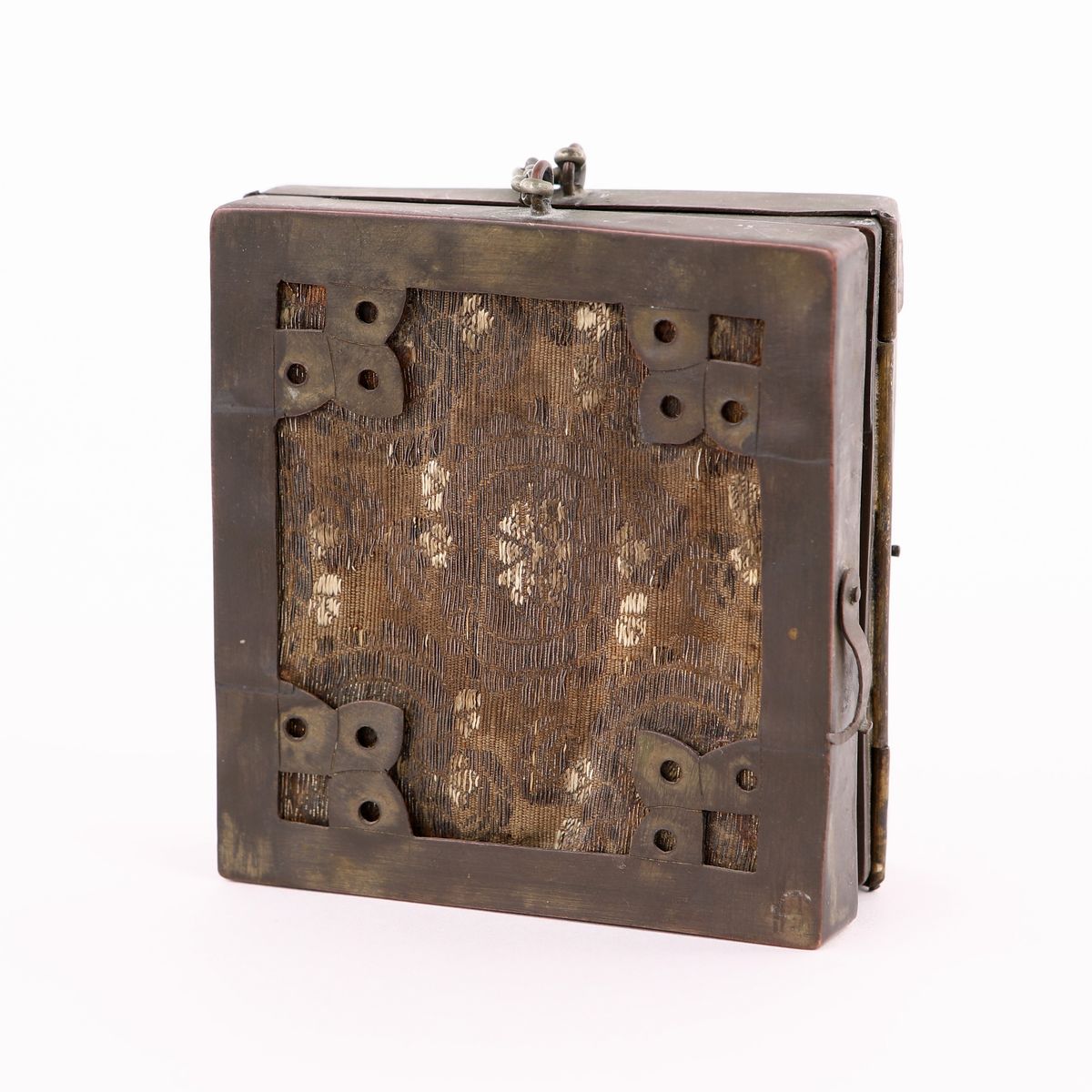ogni tavola è racchiusa entro telaio in rame ripiegabile a libretto con chiusura a gancio e catena sospesa